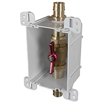 Durable ABS box mounts securely to stud or between studs.